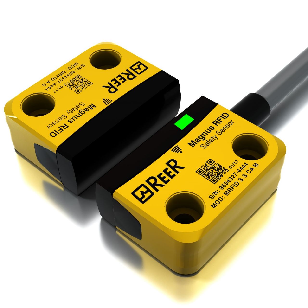 ReeR’s Safety Devices portfolio provides a wide spectrum of technical solutions aimed at safeguarding machines, equipment, and personnel in industrial environments. Among these solutions are contactless sensors which include magnetic and RFID safety switches that monitor the position of sliding, hinged or removable guards; safety encoders based on Sin/Cos incremental technology to support certified speed monitoring functions; interlock switches that lock guard doors and prevent operation unless safe conditions are met; laser scanners (AOPDDR devices) that detect intrusions in defined zones without requiring a cooperating target; and safety photocells for single or multiplexed beam protection. These devices are engineered to offer high safety levels (Type 4, PL e, SIL 3), functional reliability, and seamless integration into control systems, thus ensuring that the most demanding safety requirements can be met in modern industrial automation systems.