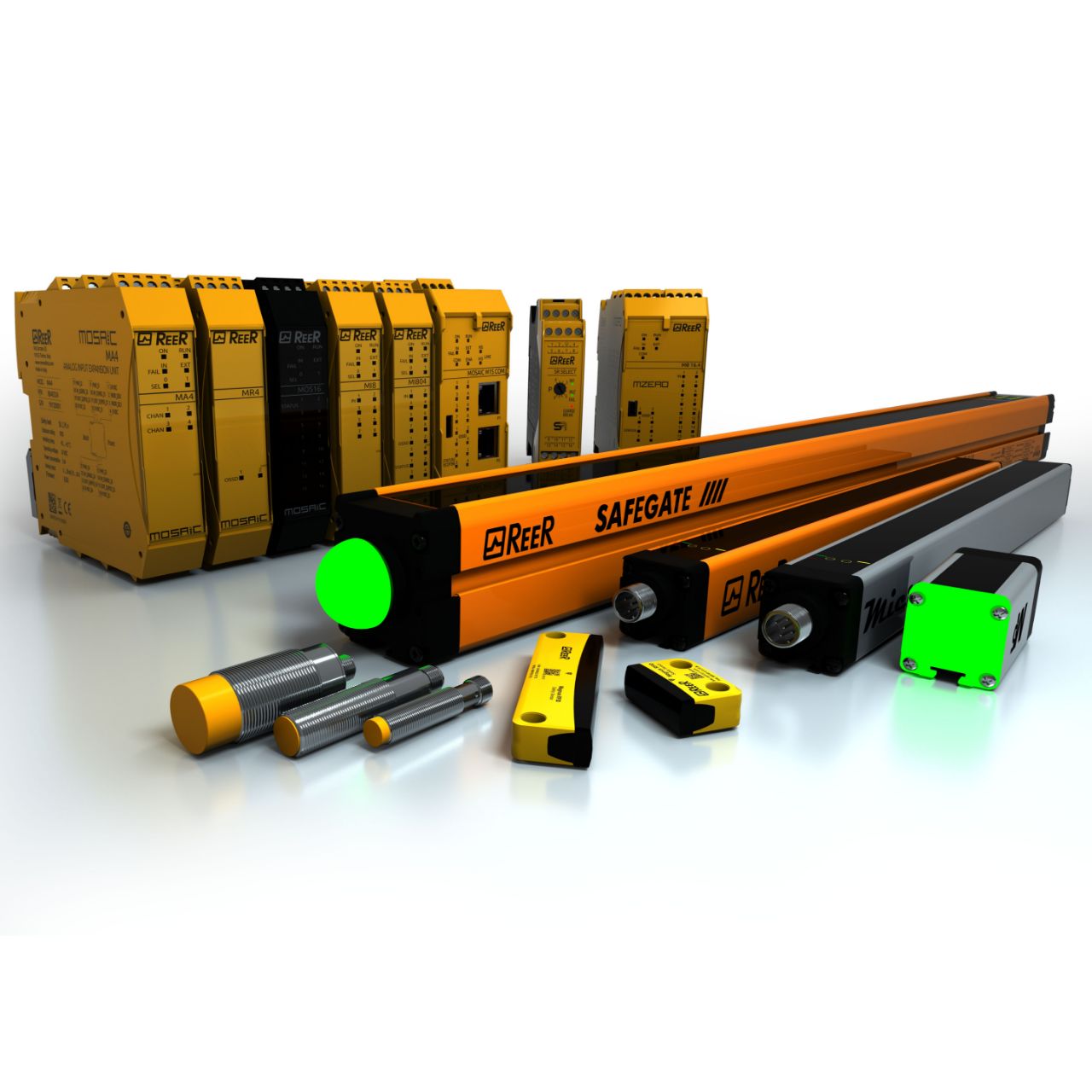 ReeR’s Mosaic Safety Controller platform represents one of the most modular and scalable safety logic systems available, enabling centralized and flexible control for complex automation architectures. Its range of safety light curtains is recognized for precision, durability, and compliance with international safety standards, ensuring operator protection even in demanding applications.